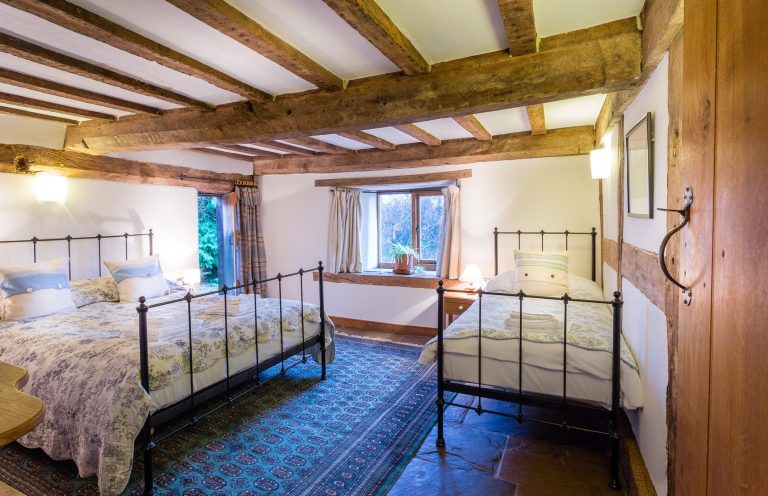 The only bedroom that overlooks the water garden; this room is up a staircase and shares a bathroom with the Twin Room.